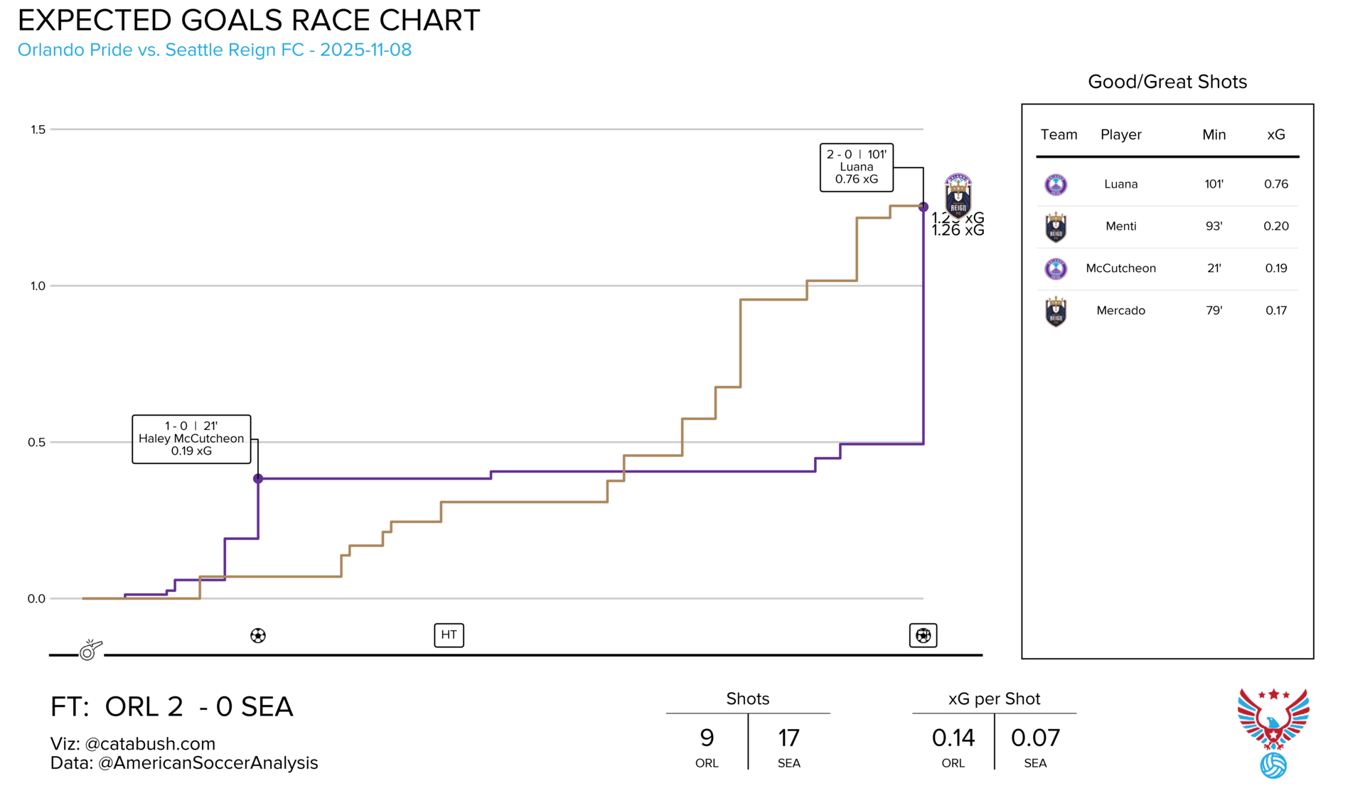 Funny thing was, neither team actually looked comfortable in a suddenly open game of soccer. The Pride’s xG flatline after the goal is hilarious, and underscores the extent to which they shut shit down after getting what they wanted.