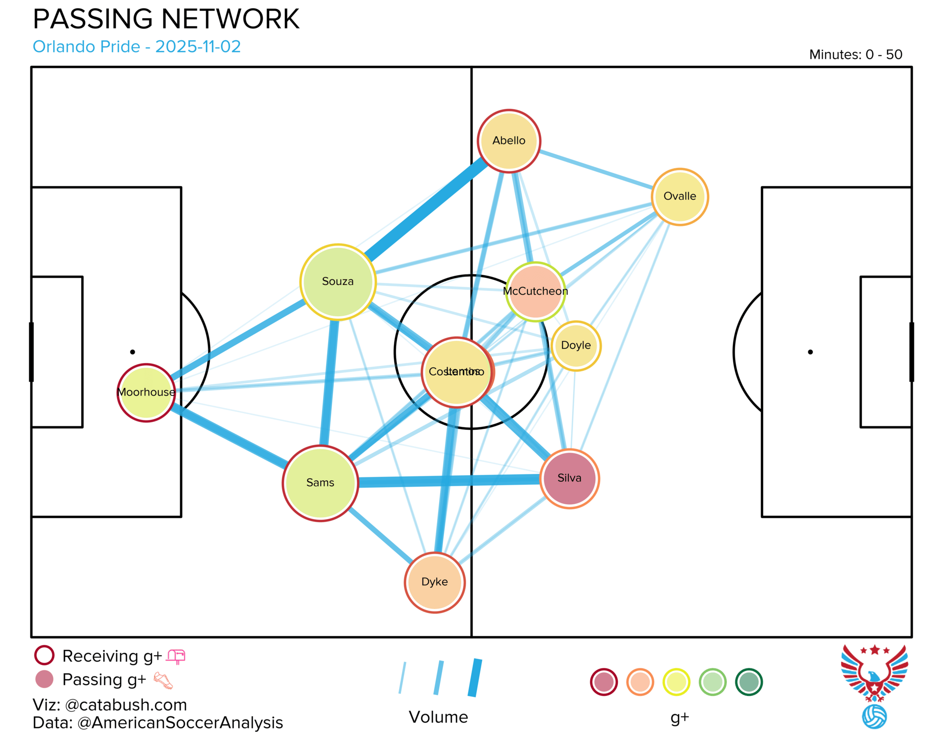 What we’ve come to expect from a Banda’less Orlando Pride, good shape, structure, passing connections and volume on every line except the attack.