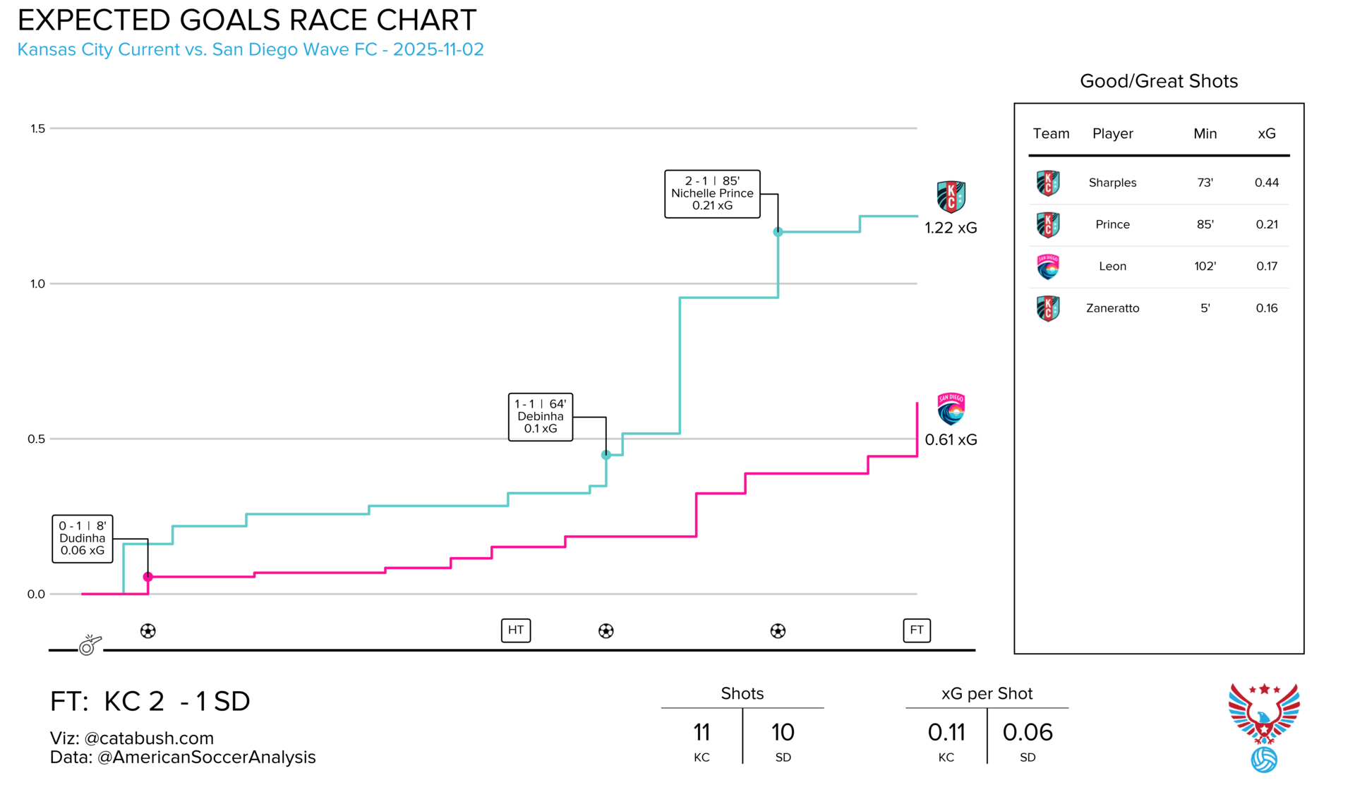The Wavé scored early and had an impressive first half, holding the Current to just .18 xG. Then the second half happened.