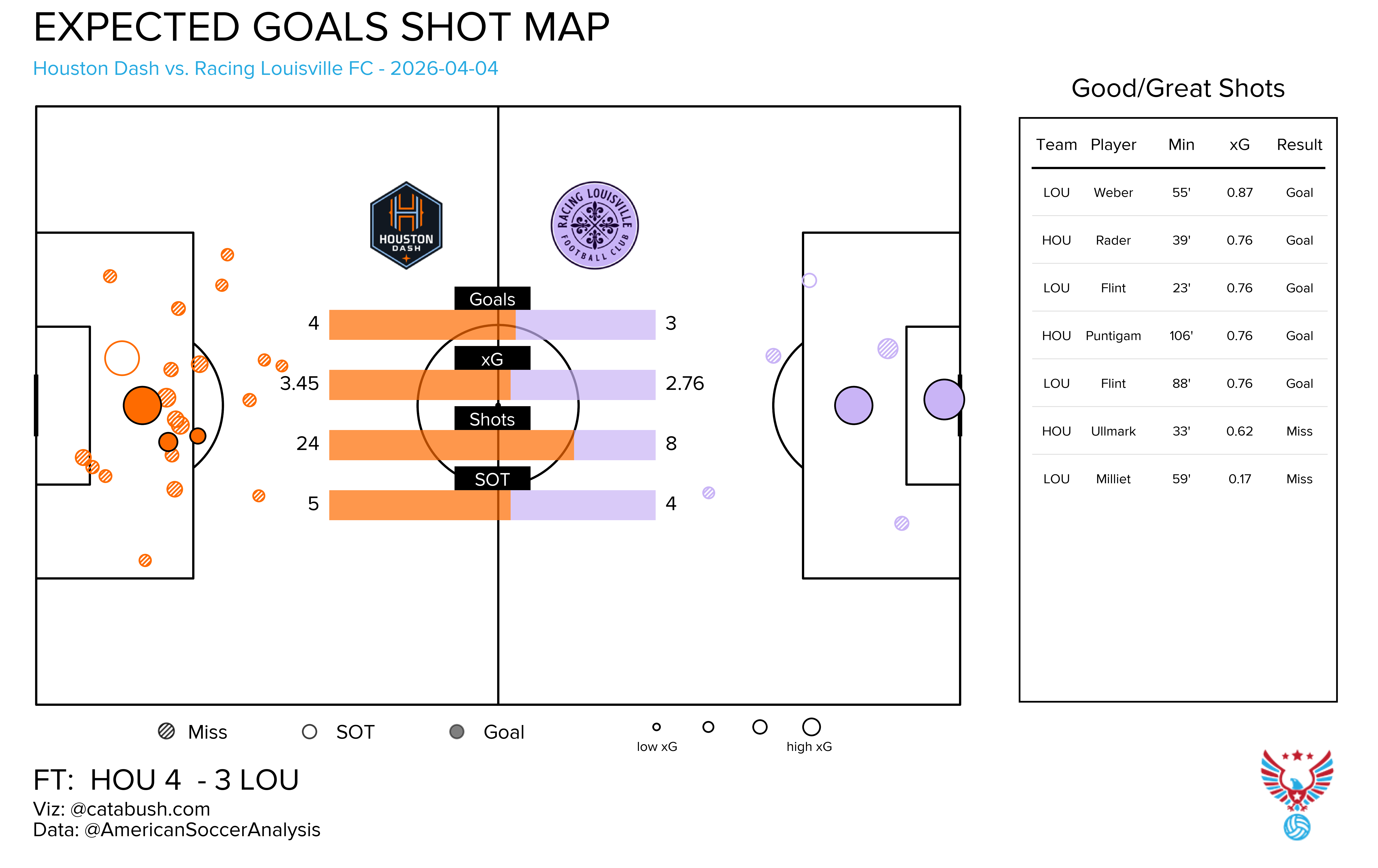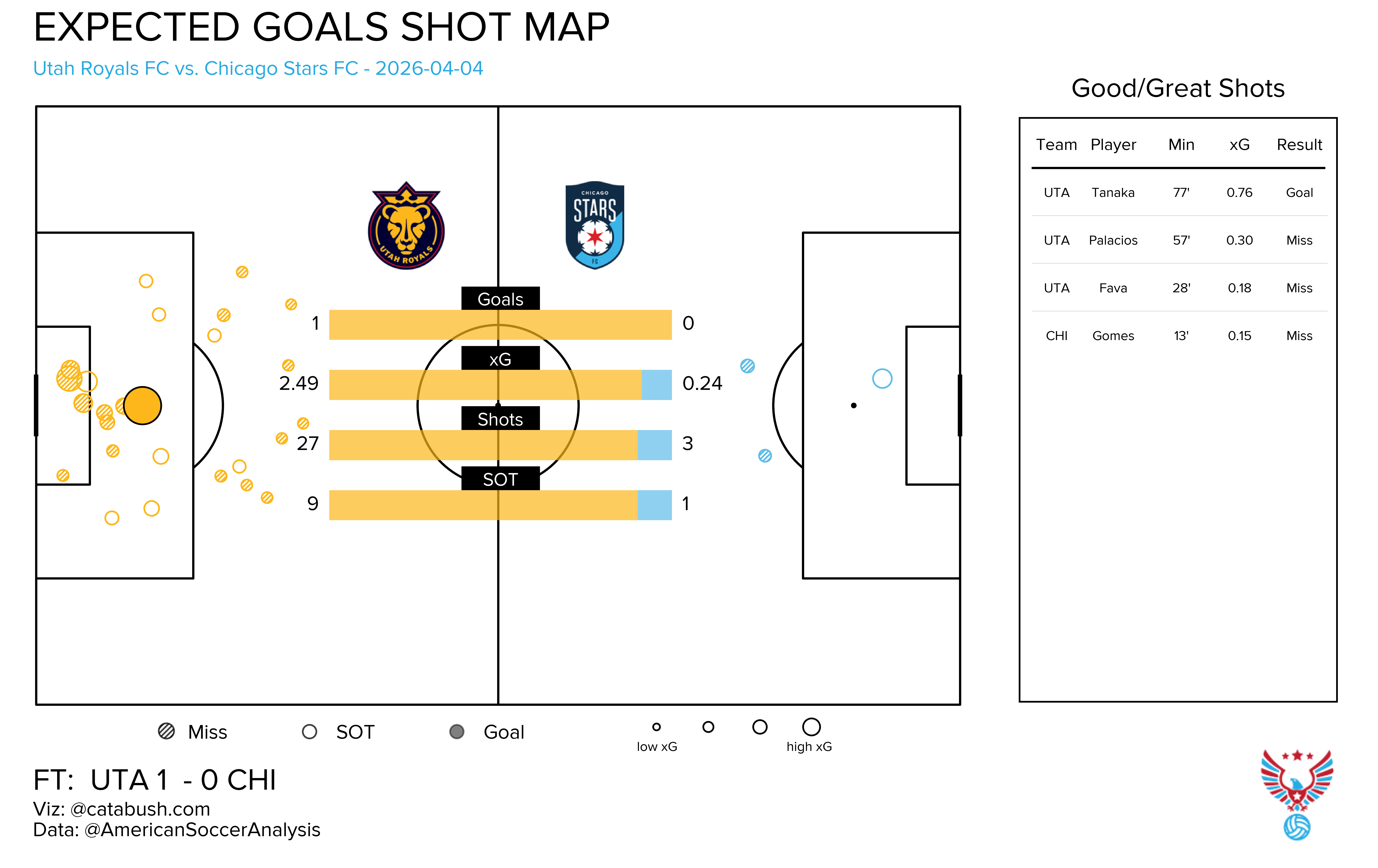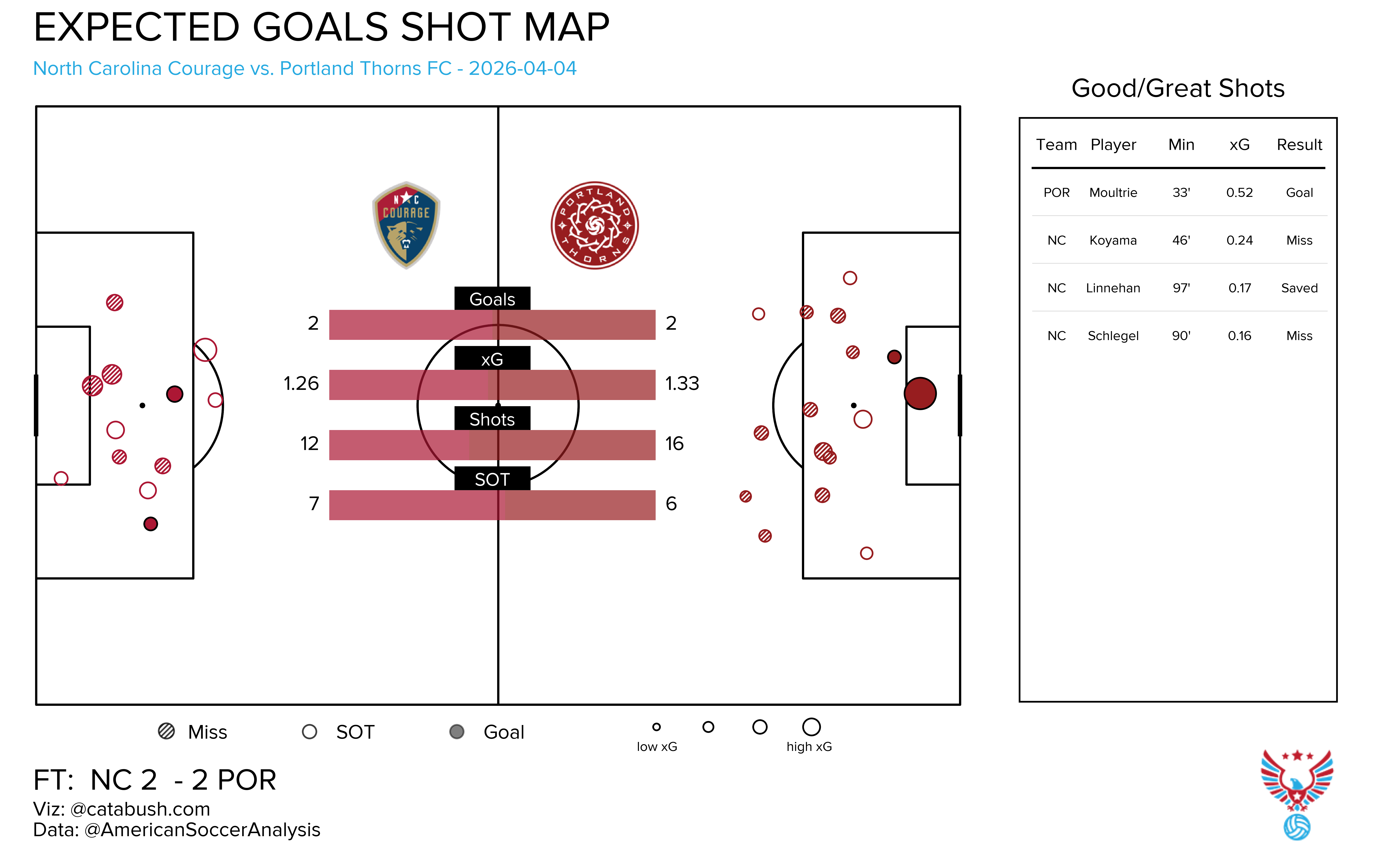 Neither team managed to put up a quality xG shot, but it didn’t matter. Ludmila finished the only shot she had, a .06 xG shot that she curled around Casey Murphy.