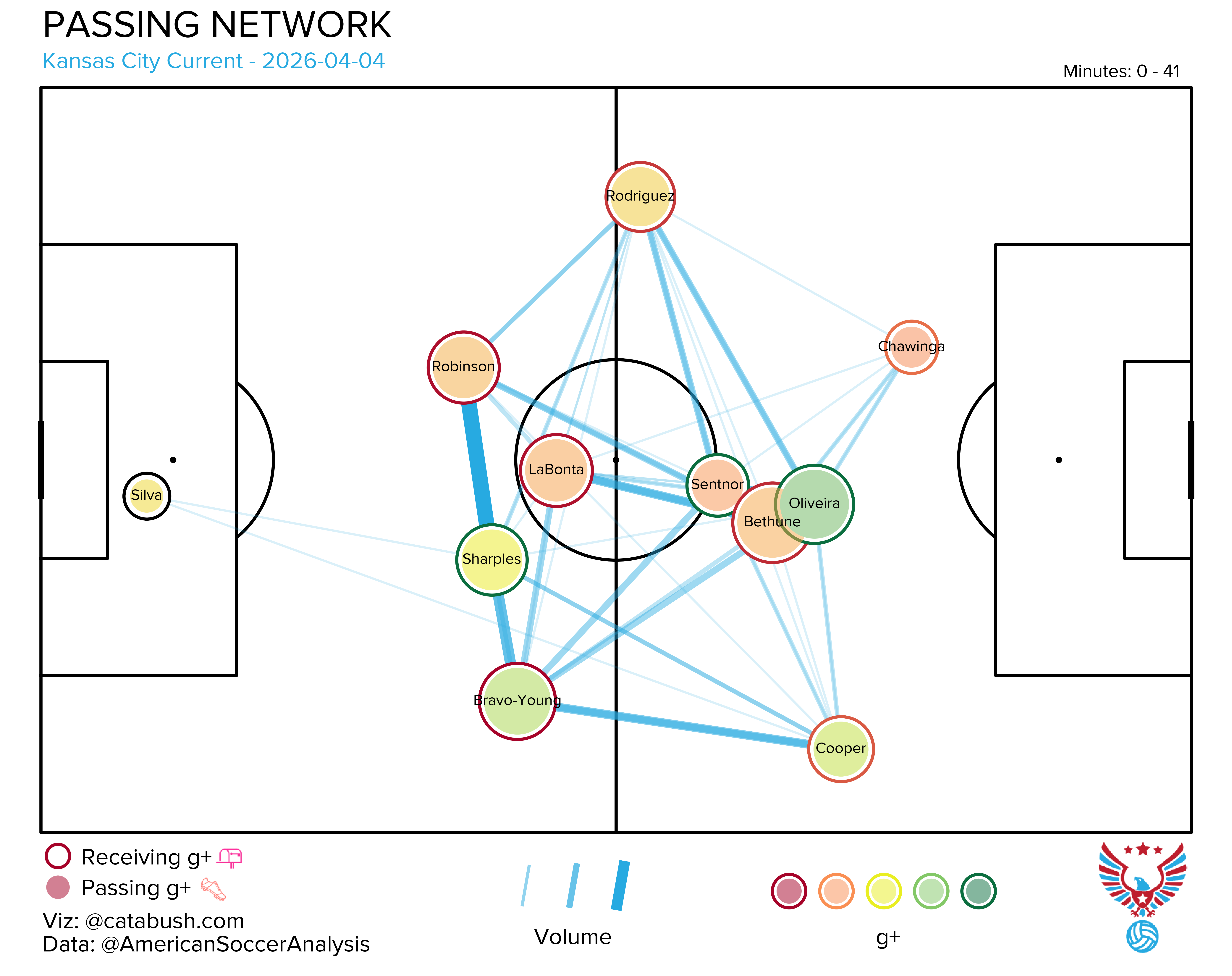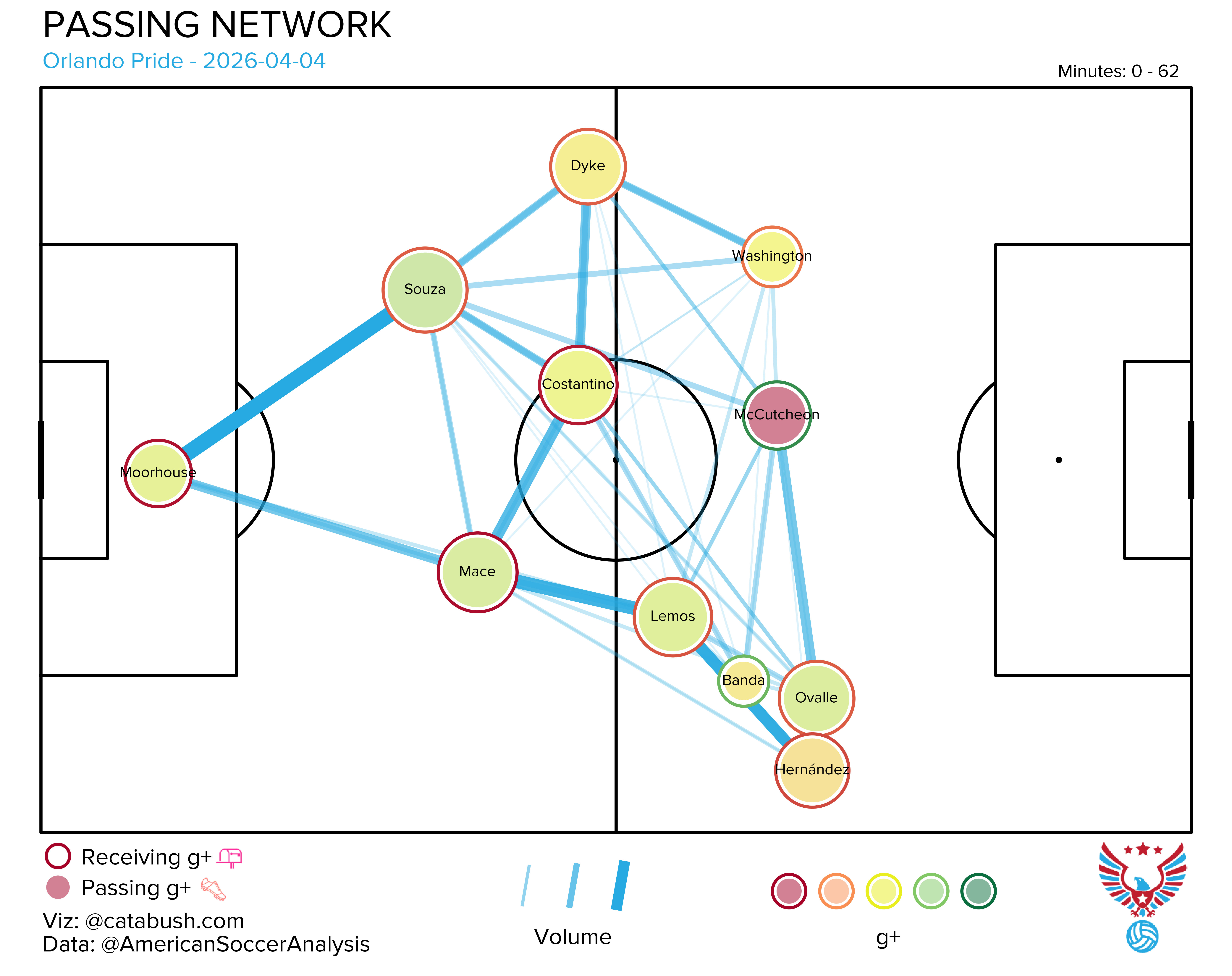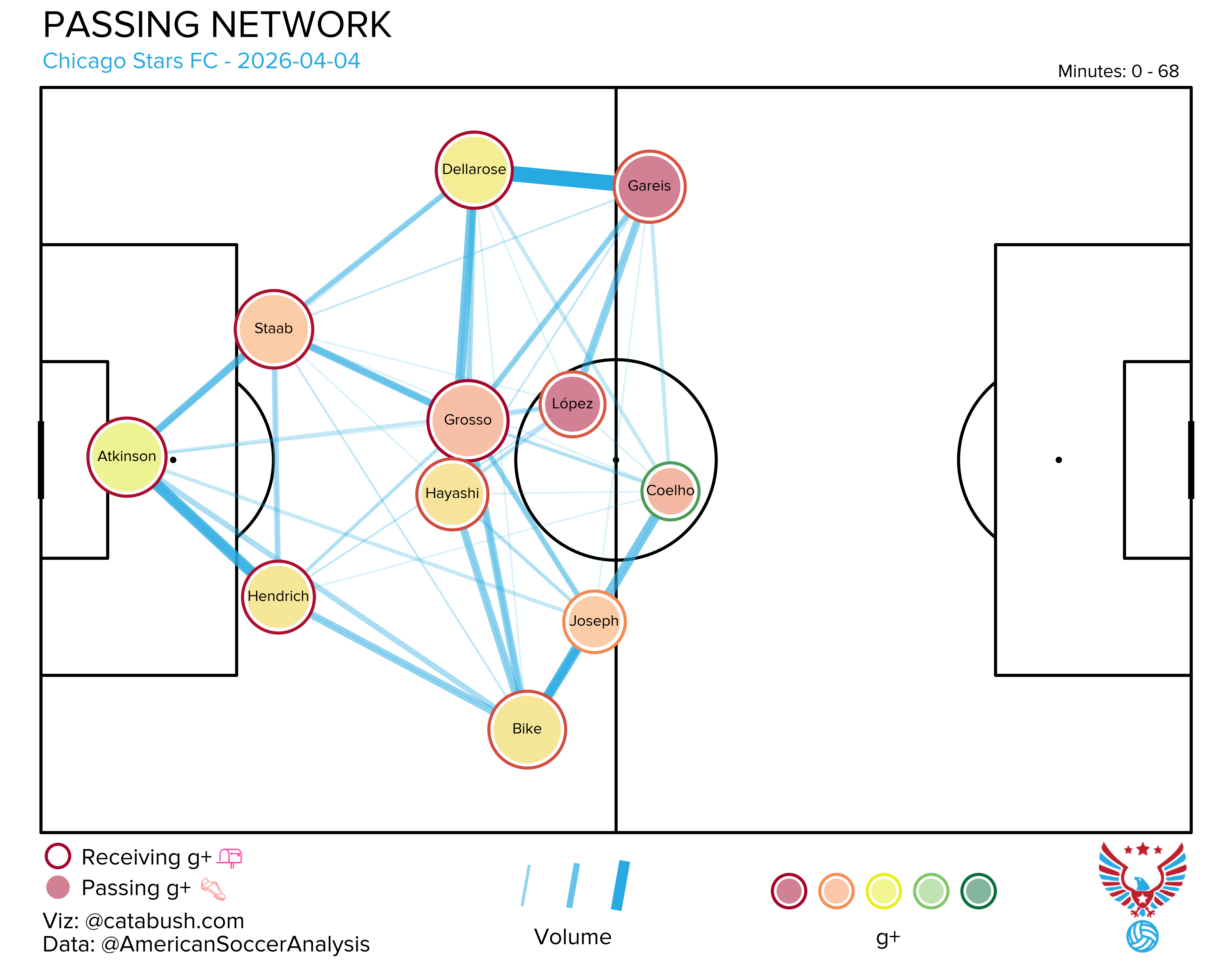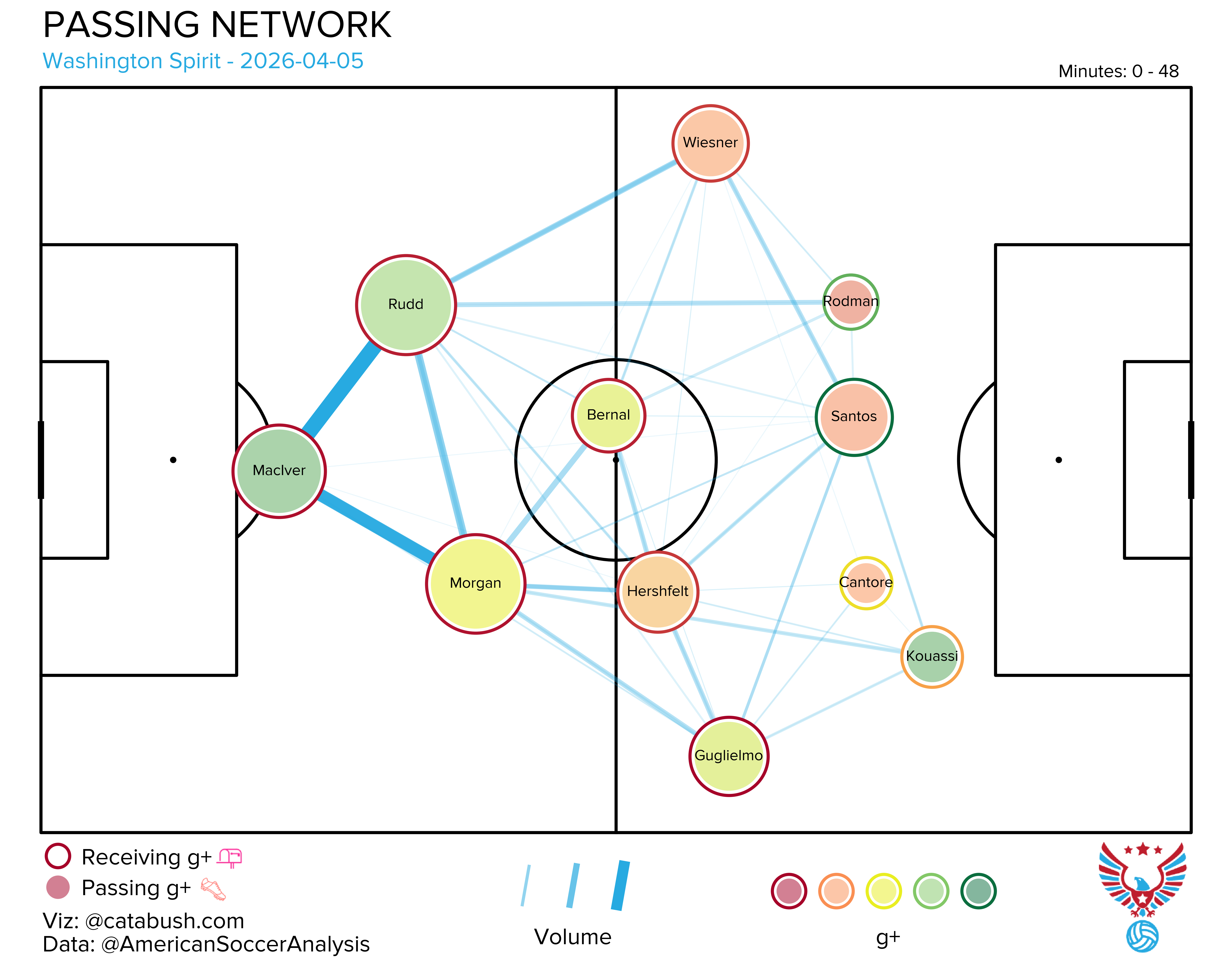 If you want some deeper info on the nerdery that’s about to follow, I got you. Read and reference this explainer for a breakdown of all the elements on the shot charts and goals added (g+) passing networks I’ll be dropping all season. The good Cata Bush helped bring these to life, and there’s a lot of data captured across the two visualizations.