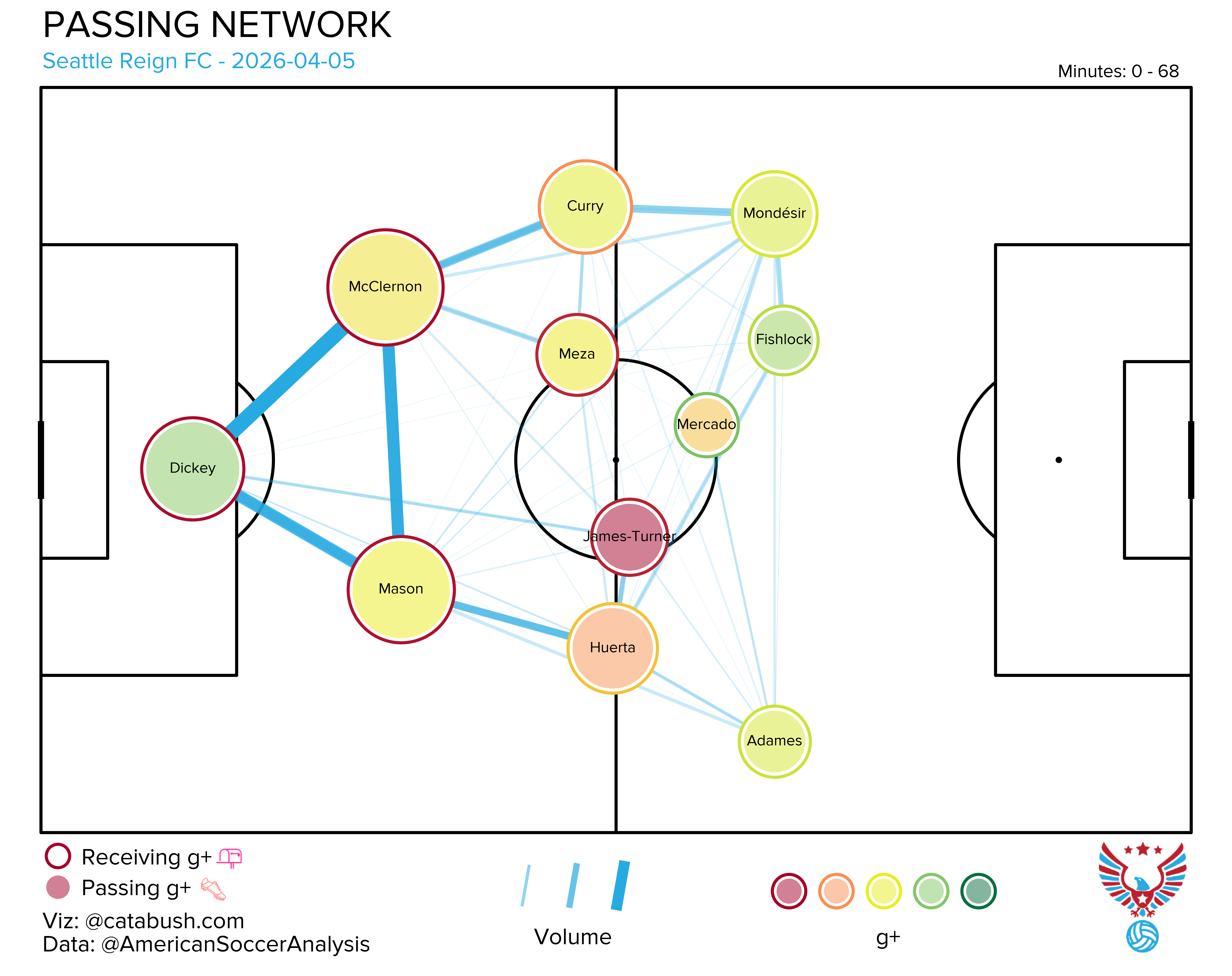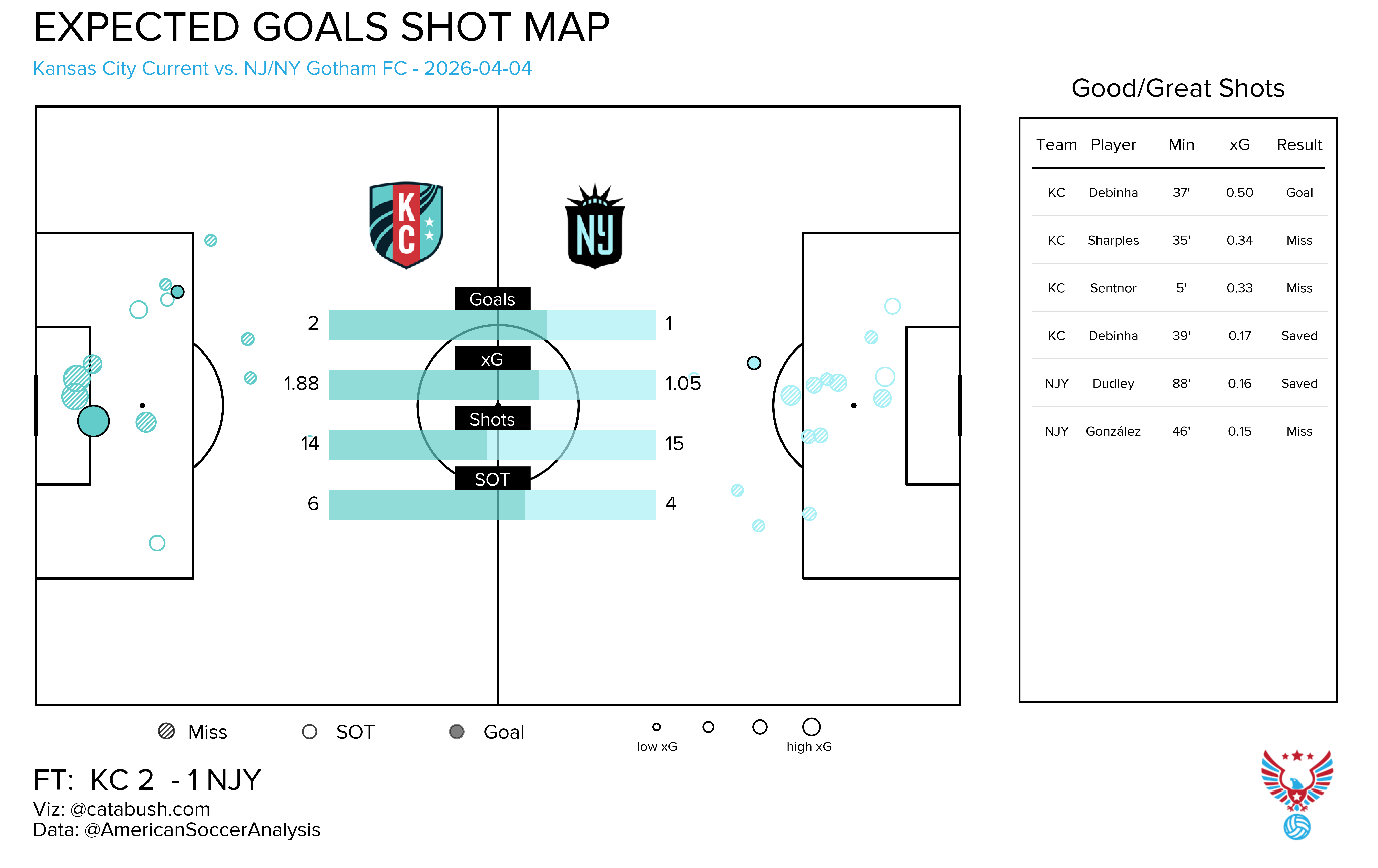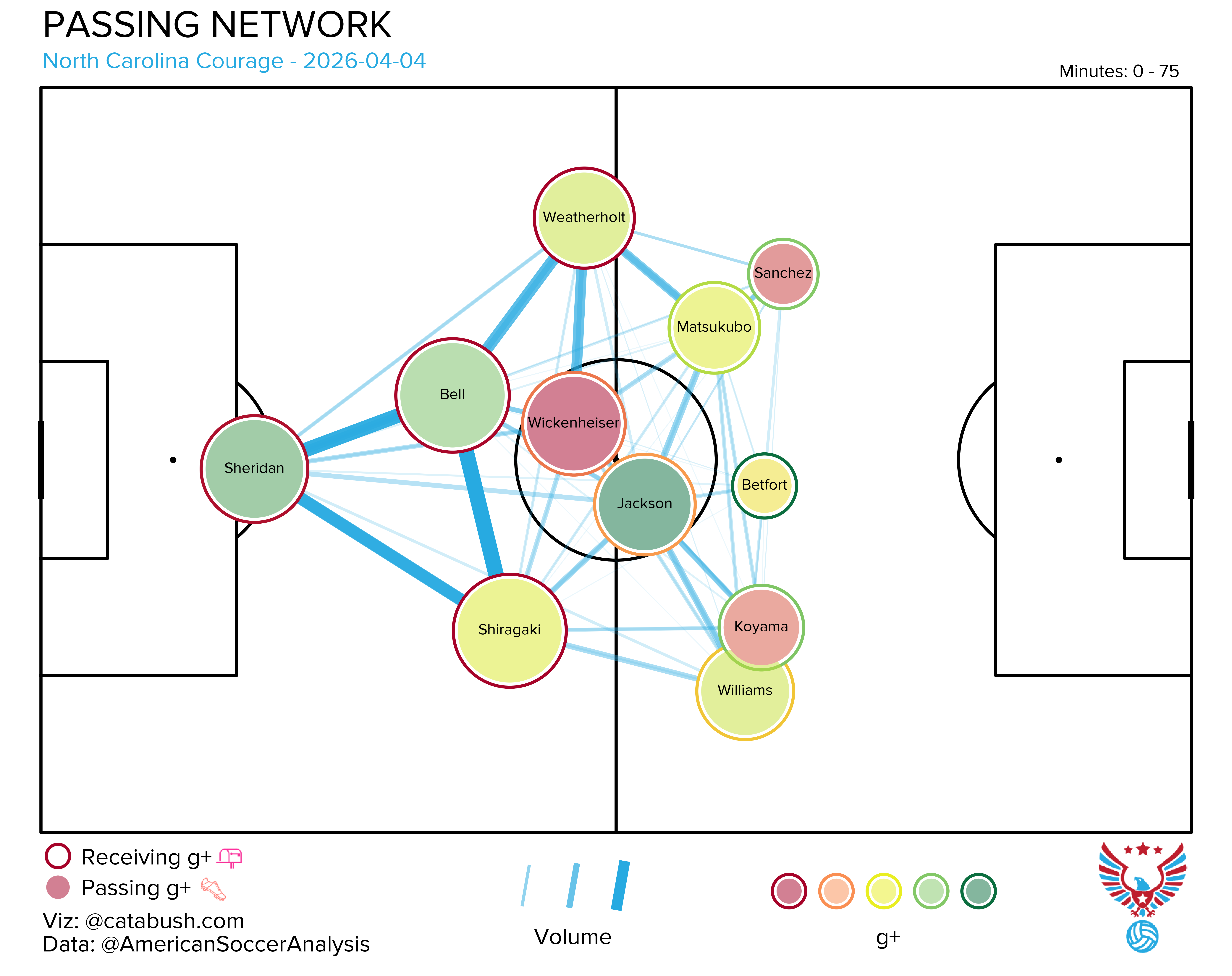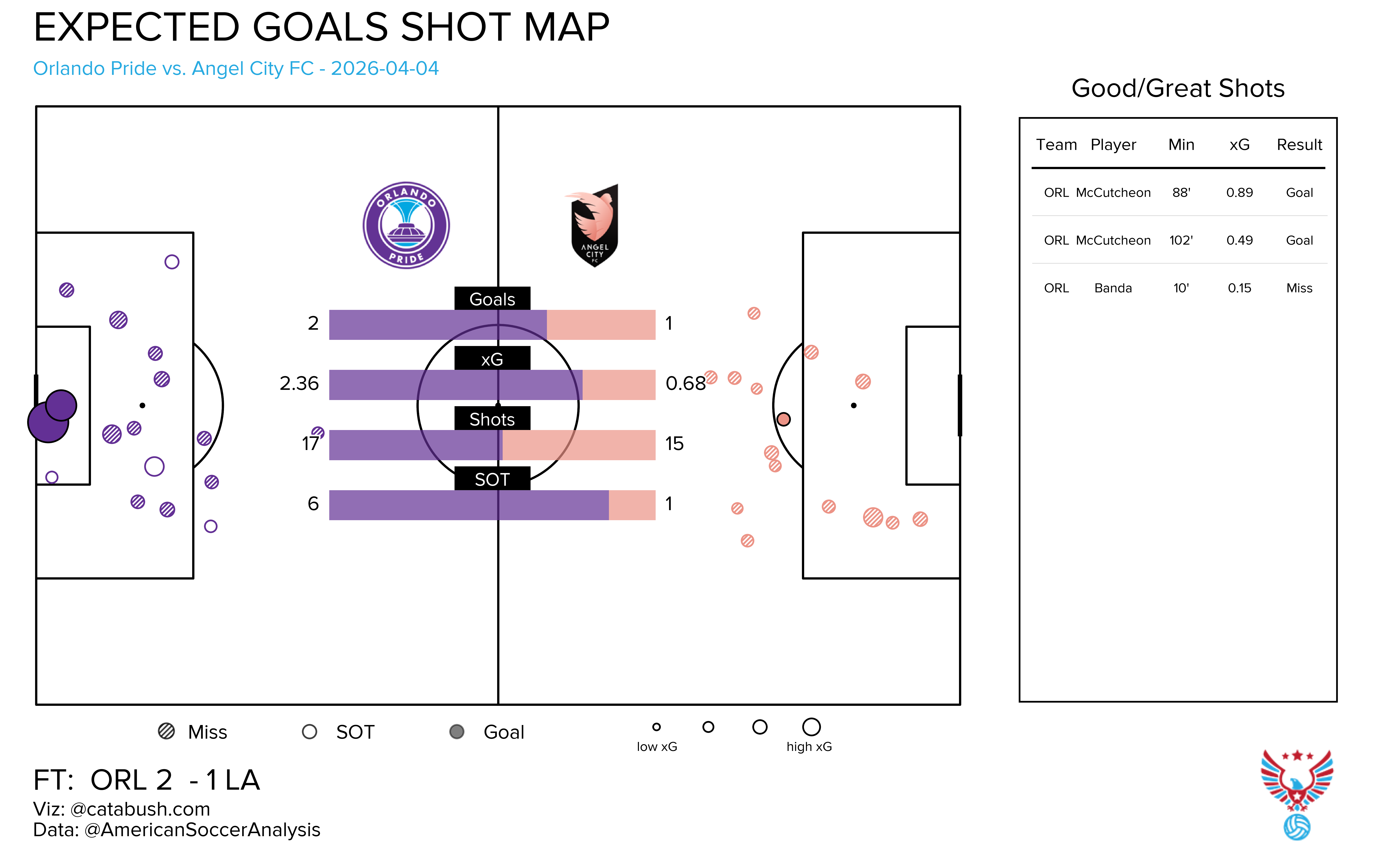 If you want some deeper info on the nerdery that’s about to follow, I got you. Read and reference this explainer for a breakdown of all the elements on the shot charts and goals added (g+) passing networks I’ll be dropping all season. The good Cata Bush helped bring these to life, and there’s a lot of data captured across the two visualizations.