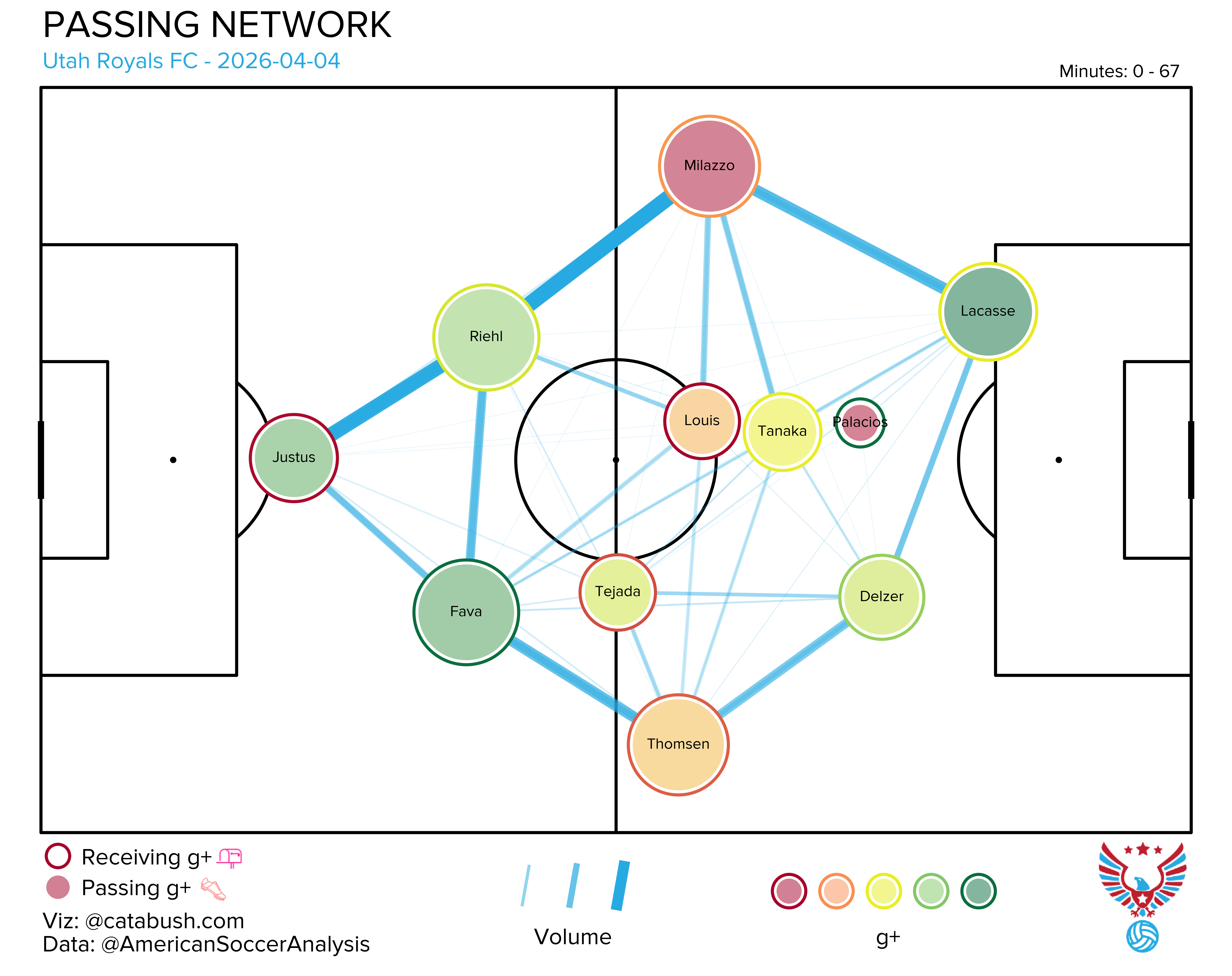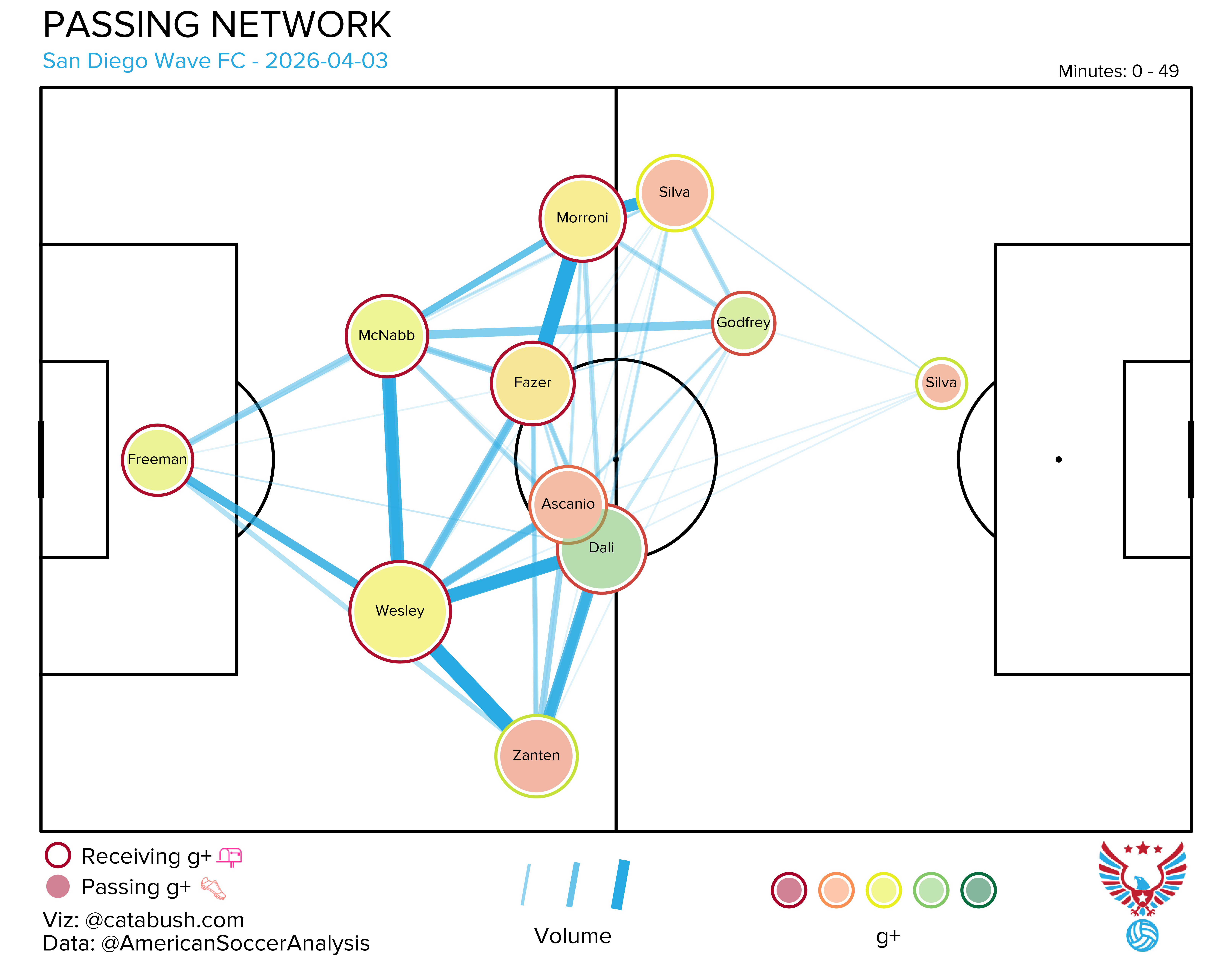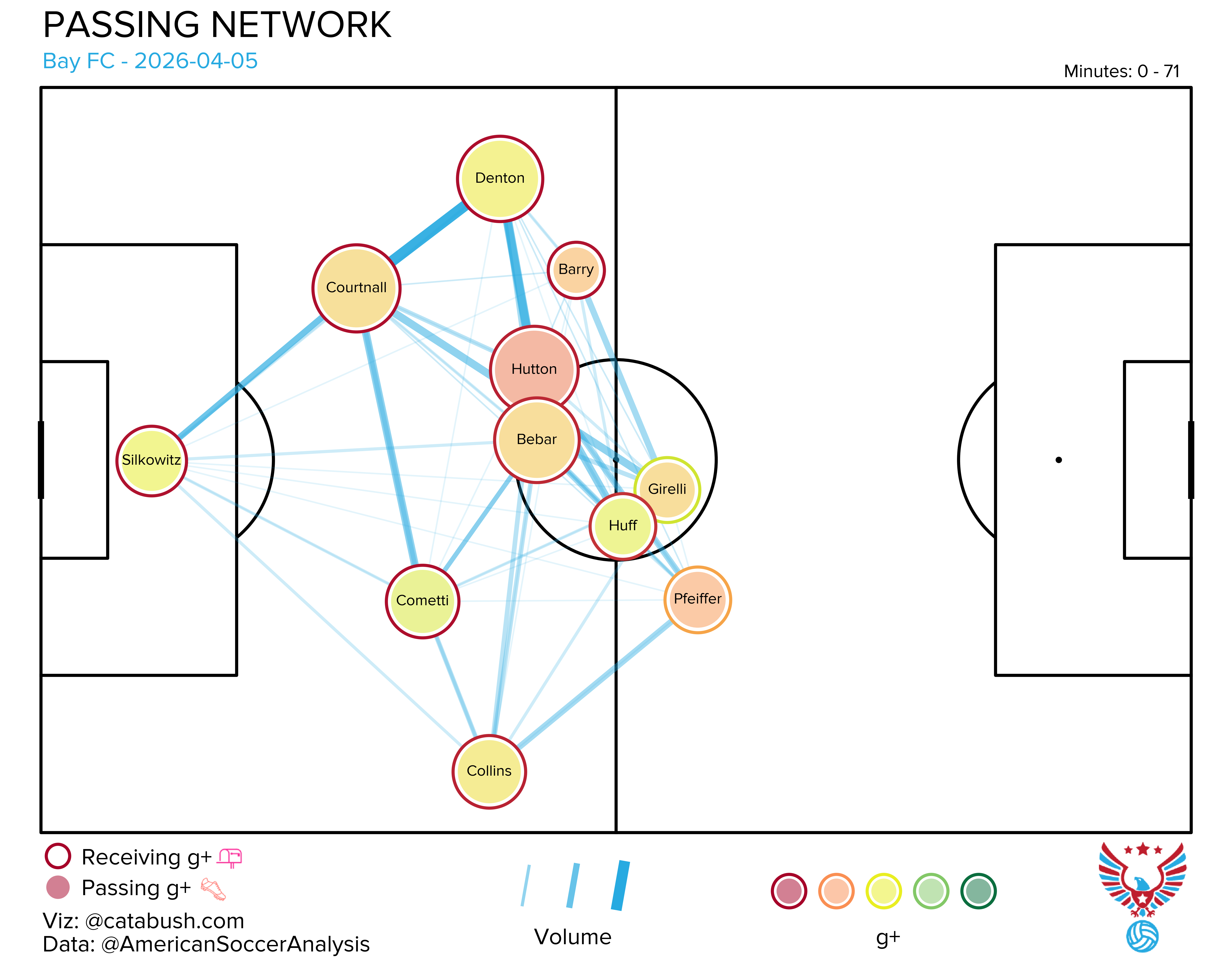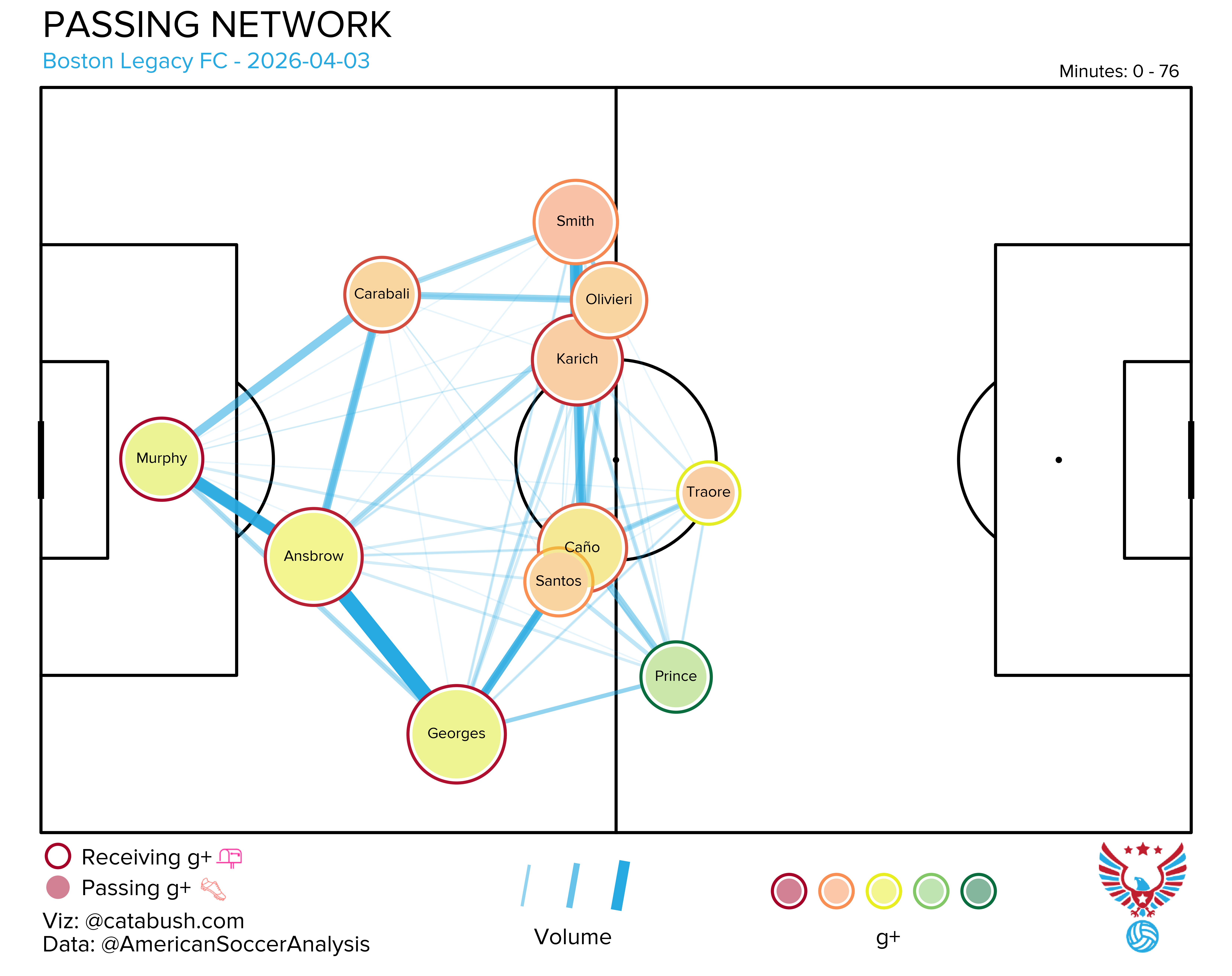 If you want some deeper info on the nerdery that’s about to follow, I got you. Read and reference this explainer for a breakdown of all the elements on the shot charts and goals added (g+) passing networks I’ll be dropping all season. The good Cata Bush helped bring these to life, and there’s a lot of data captured across the two visualizations.