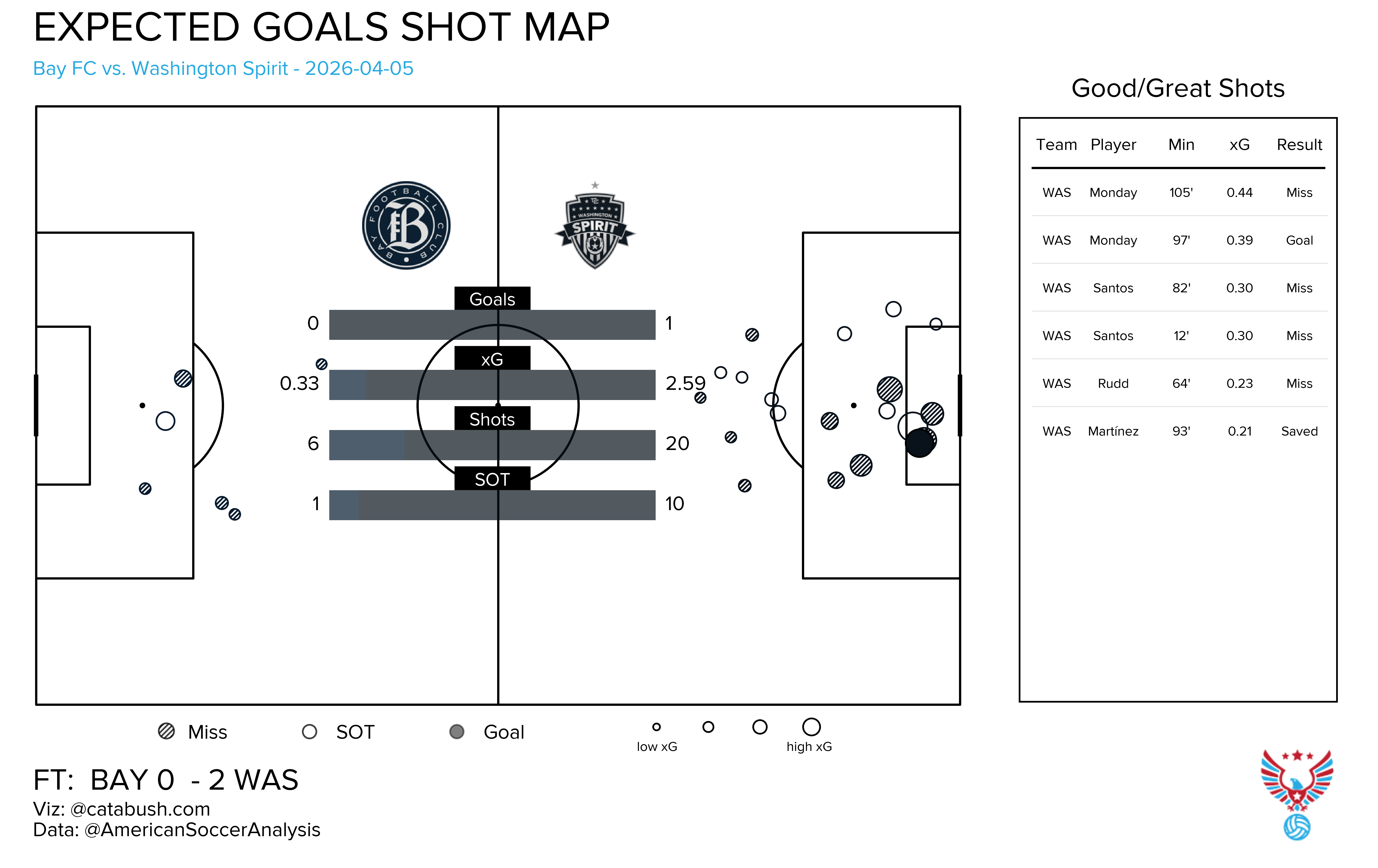 Alright, to the woso again. I’m using this international break to reset a bit so I will get back to my normal schedule soon. But here are the data vizzes from the weekend’s games, which featured four penalties in one game, Banda v. Gorden, San Diego getting it from the mud, giants getting their groove back (or having a mid-off, I discuss), and the Spirit continuing to kick the ball everywhere but into the net.