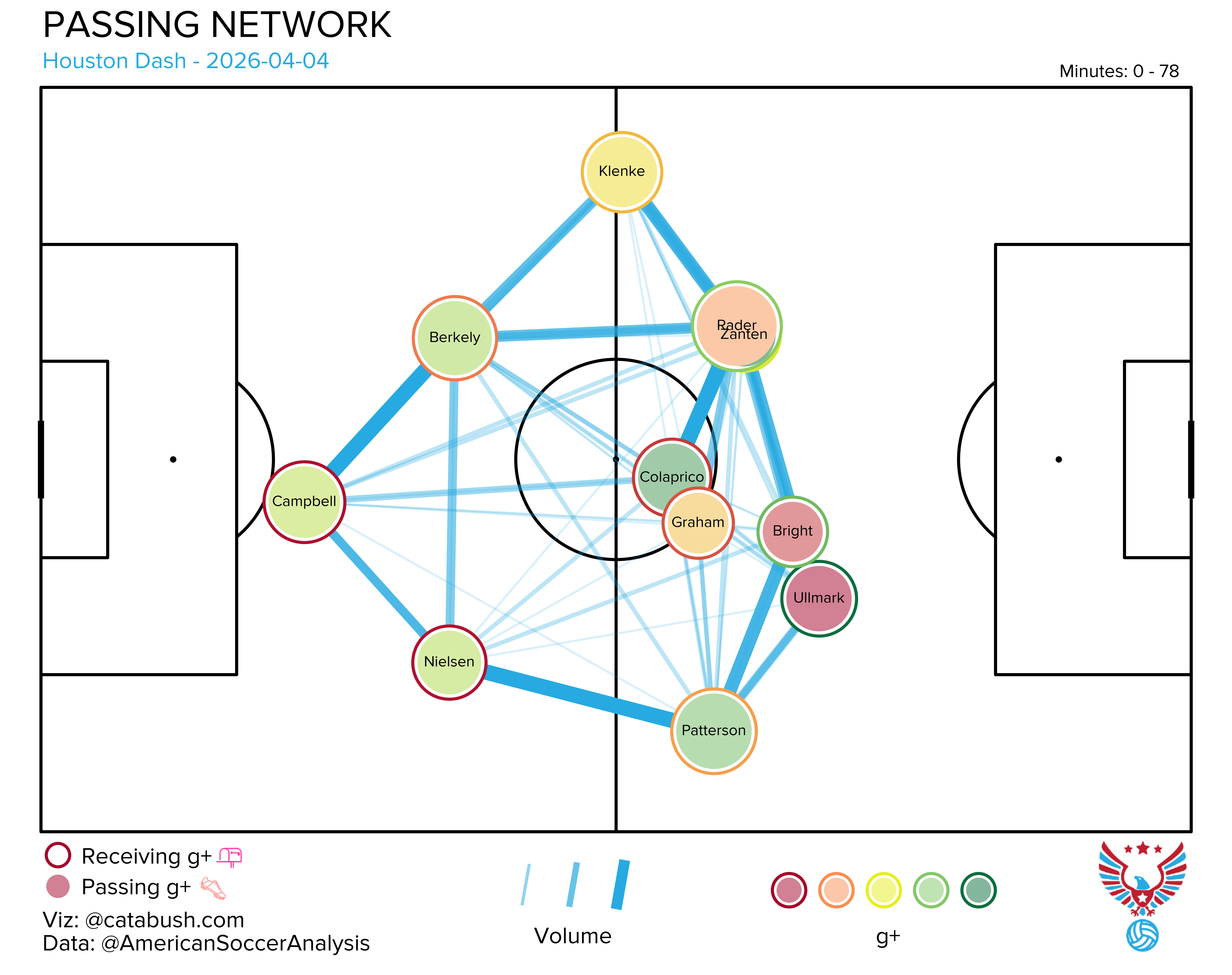 A little while ago on a broadcast a commentator mentioned how Houston wants to envelope teams in a ‘net’, and I think this is maybe what they mean. It’s working because loading up with college stars who can run their asses off is helping to quickly close spaces to attack them. In possession they’re doing a lot of work narrow and centrally, which is putting a lot of pressure on teams to condense—trapping them in the net.