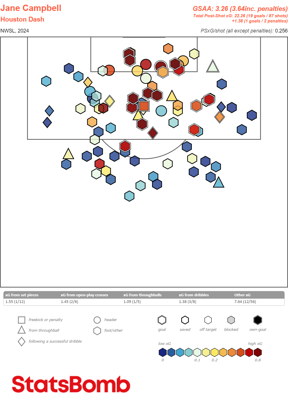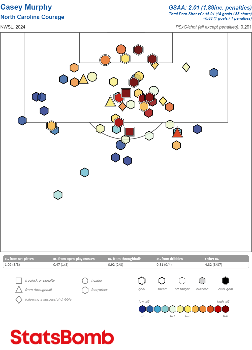Where Murphy struggles will always vex me, and vex me greatly. Her Claims - CCAA% (Claimable Collection Attempts over Average) — basically how likely a keeper is to attempt to claim a ‘claimable’ pass or cross — is quite low. She’s 6’ tall, claiming crosses alone should bump that number up significantly, and yet.