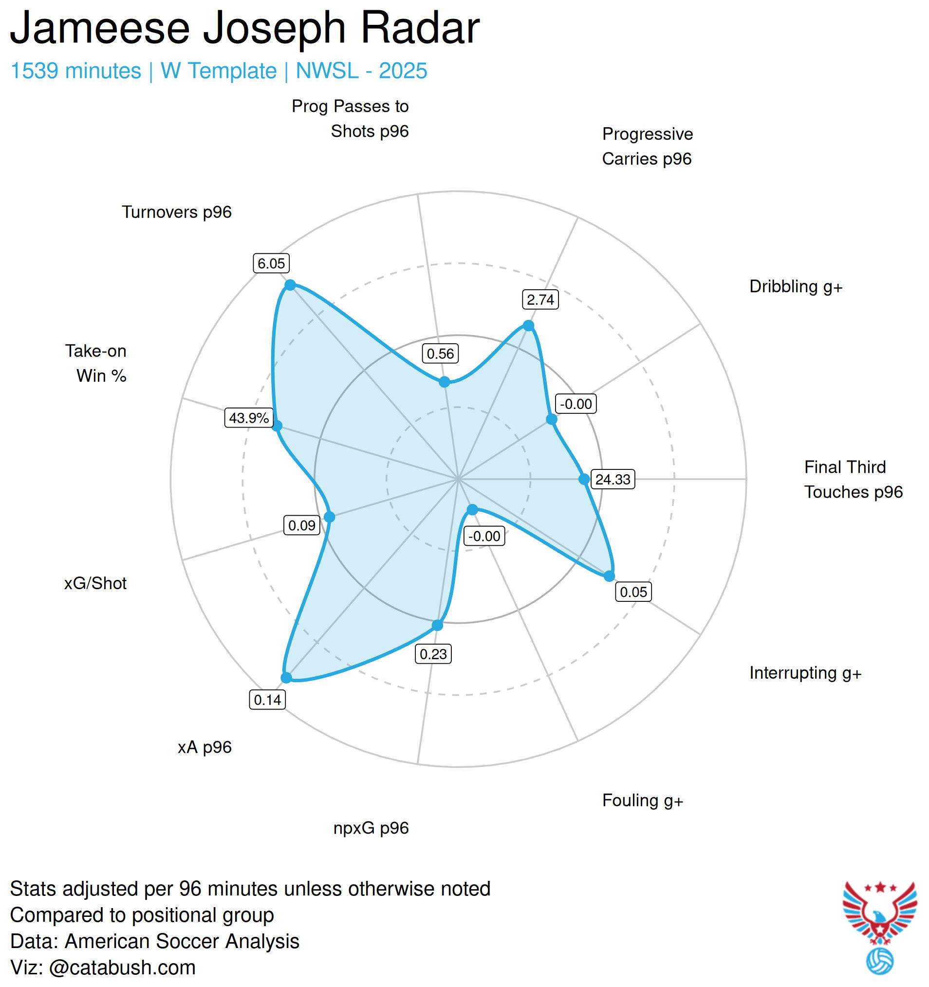 Jameese Joseph is one for the ‘step away from the spreadsheet and look at this’ crowd. During her rookie season in 2024 she showed the ability to not look out of place opposite Mallory Swanson. In 2025, she often did the same with Ludmila.