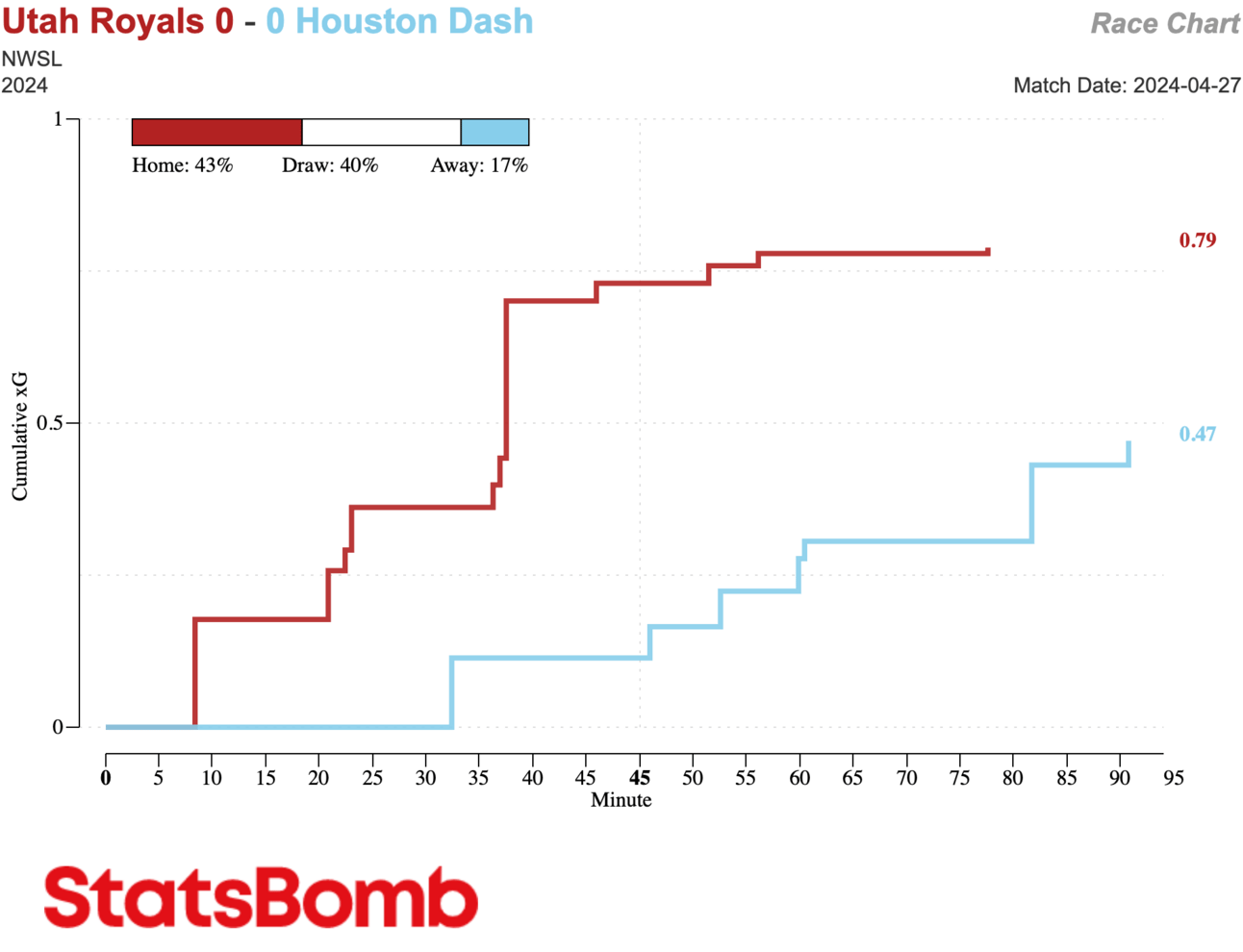 Or, trying to. Over the weekend they played the NWSL’s other struggle queens, Houston Dash, and the xG race chart tells you most of what you need to know about how it went.