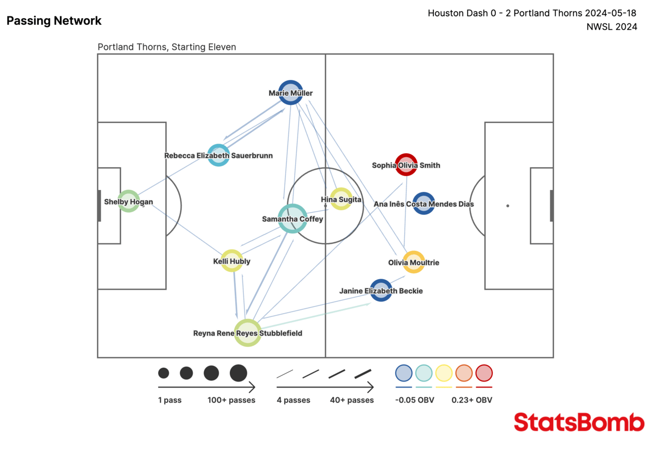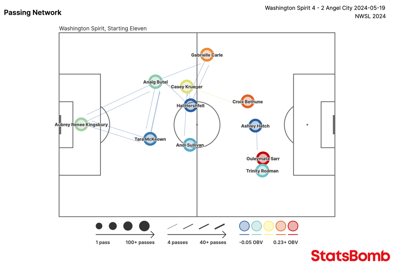 (Also, this pass network doesn’t show it, but rookie Leilanni Nesbeth did a terrific job on Rose Lavelle.)