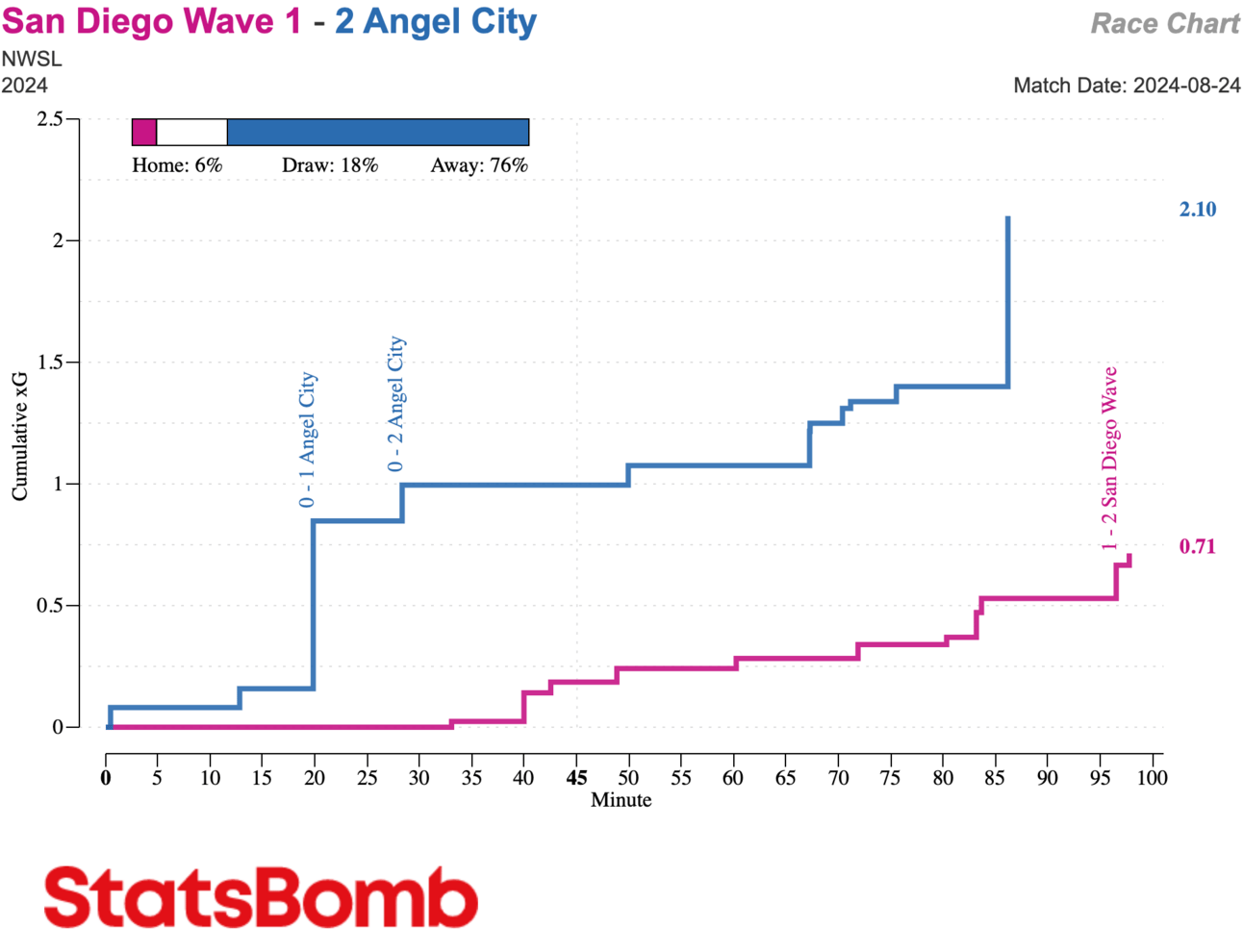 The Landon Donovan Experiments™ are off to a worrying start. Angel City made a very important move to get Katie Zelem to add to their midfield, but she didn’t start and by the time she made her debut in the 65 minute her team had been up 2-0 for over half an hour. Either Angel City rediscovered the good vibes or Jill Ellis’ mashing of the self-destruct button had predictable consequences detailed by the label above said button.