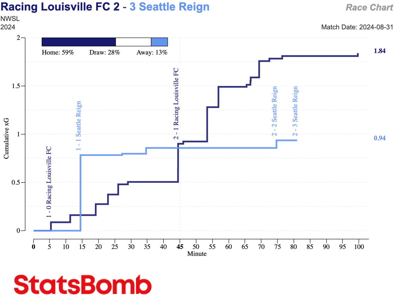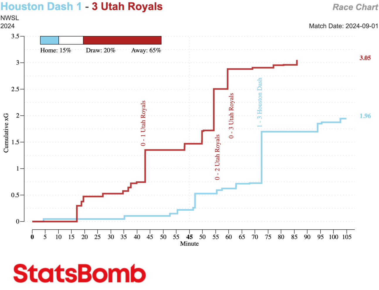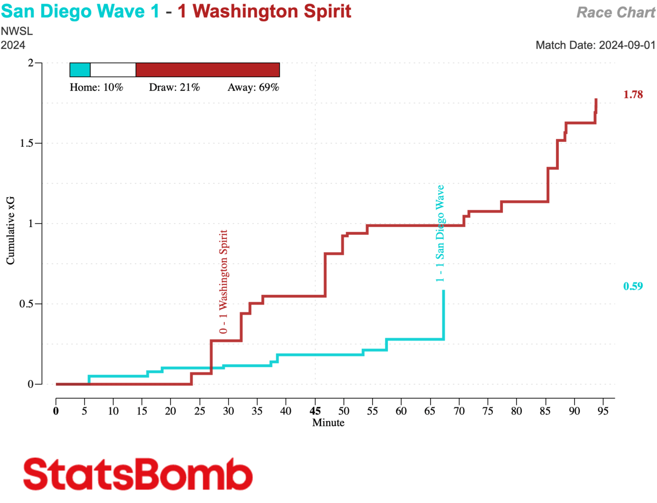 The Soccer Gods giveth, and taketh away, and whomst are we to judge? Last week against Kansas City the Spirit dropped four goals on .52 xG. This week they hit 1.78 total xG and didn’t score a single goal of their own. (McNabb’s own goal registers as xG, but was .01.)