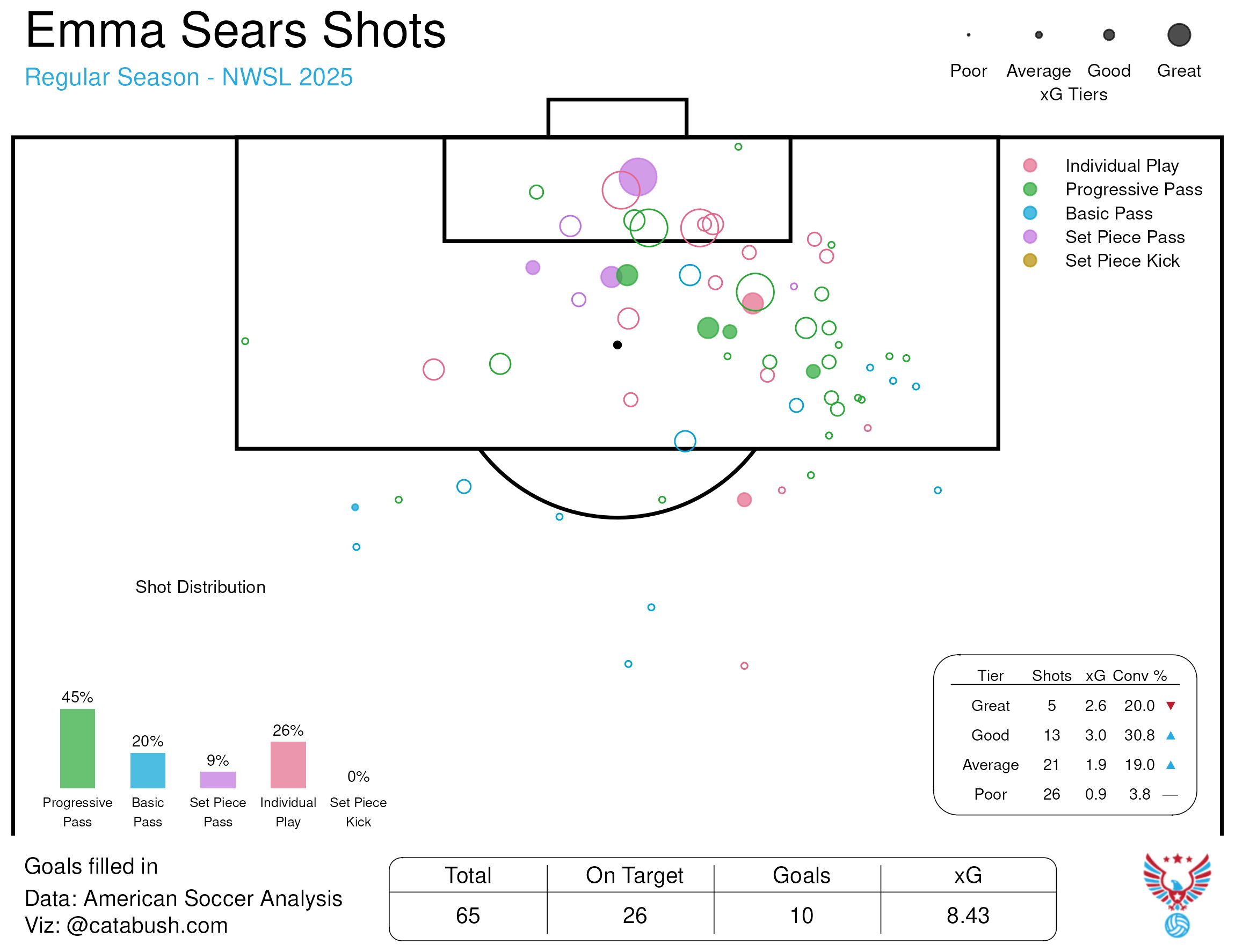 Emma Sears’ shot chart, 2025 NWSL season