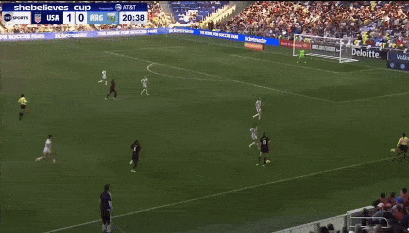 An erroneous offside flag is the only thing that kept her from grabbing a goal in her 45-minute outing against Argentina. I particularly liked her connection with Jaedyn Shaw, who’s a clever passer and mover between and behind the lines. The linkup for this play was super fun, and Joseph did extremely well to keep herself onside, get to the ball first, maintain composure, read the situation and finish. It’s very annoying that the flag went up, there was a lot of good stuff that happened here…